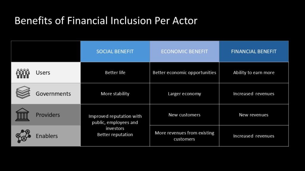 Alessandro also broke down who is responsible for driving financial inclusion and why collaboration is essential. He explained that consumers are at the heart of the ecosystem, as they are the ones who ultimately use and demand financial services.